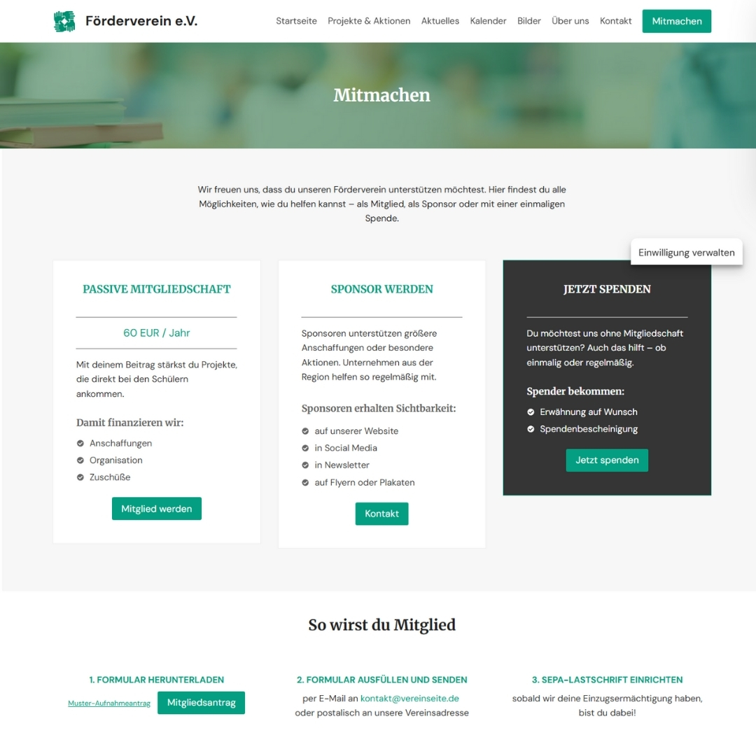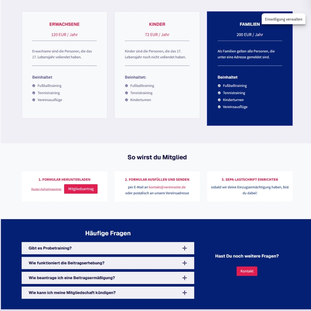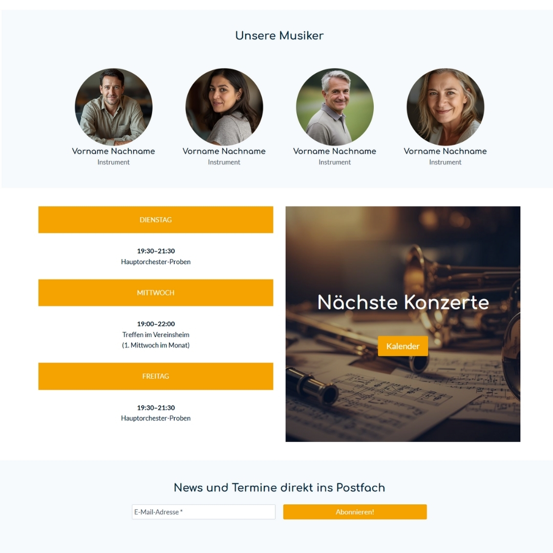 Diese Seitenstruktur und Funktionen passen zu fast jedem Verein – egal ob Sport, Musik, Förderverein oder Kultur.